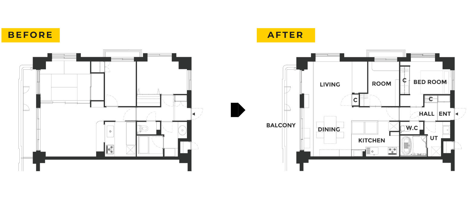 \ After /住まい手のライフスタイルに合わせて再設計された、のびやかで心地よい空間