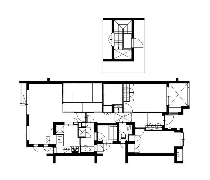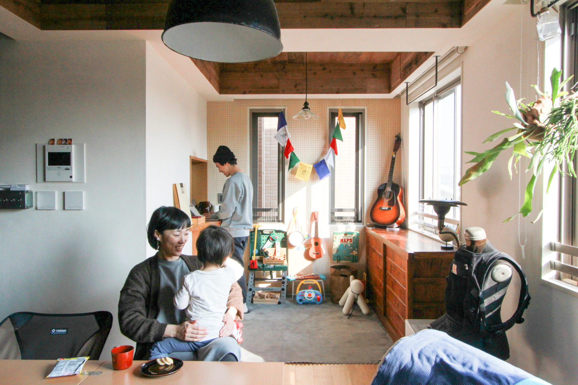 屋上バルコニーへ上がる階段と吹き抜けのある中古マンションを購入したM様ファミリー。素材感も大切にした「遊び心のあるお家にしたい」というご要望でした。