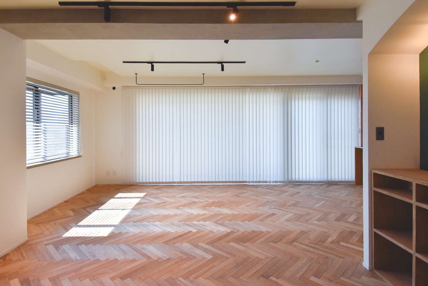 LDKの大きな窓にはカーテンではなくバーチカルブラインドを採用。角度を変えることで光量の調整や目線の遮りが可能です。
