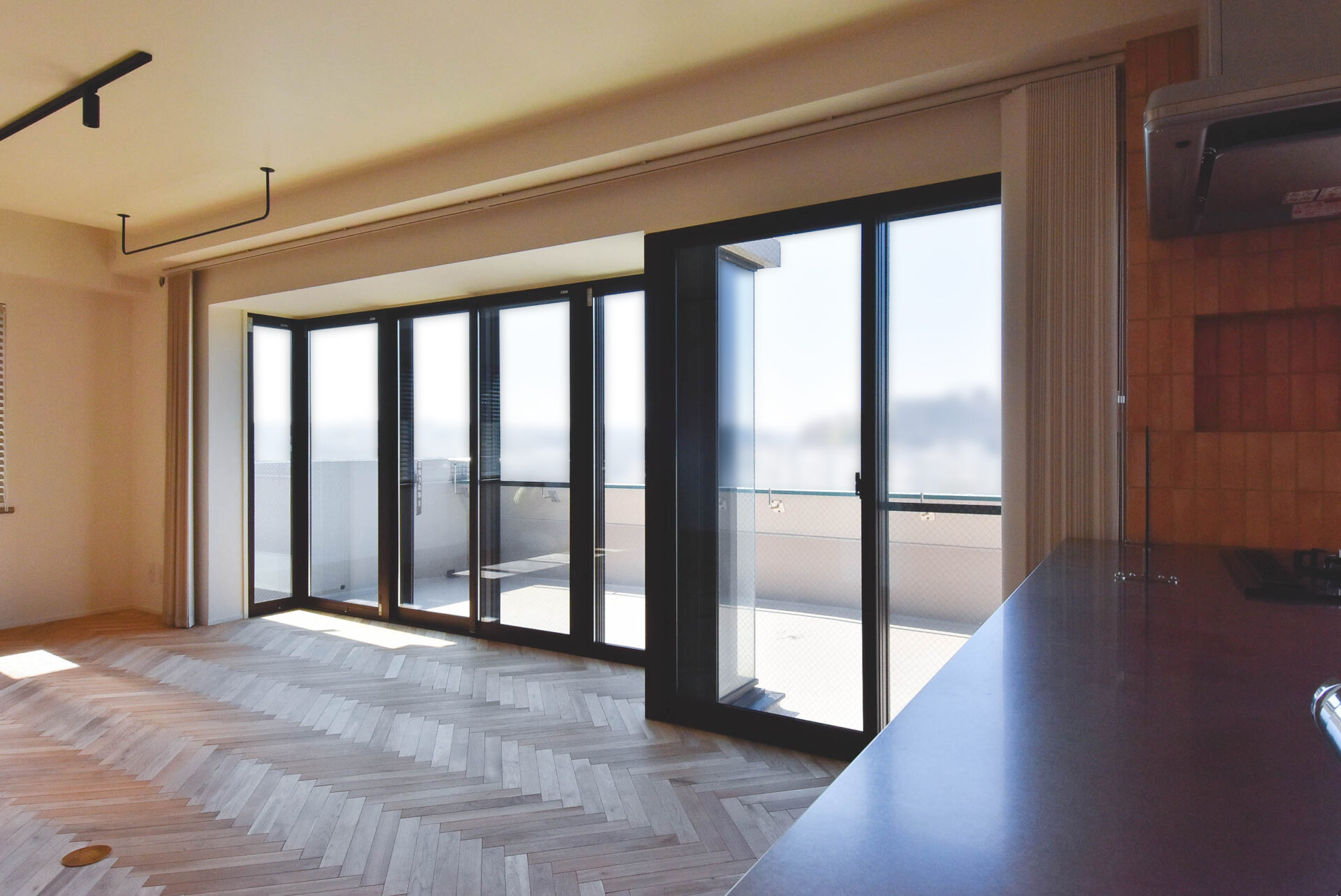 バルコニー側の窓にはインプラスを設置し、夏の熱射の対策。また壁と天井にも断熱材を施しています。