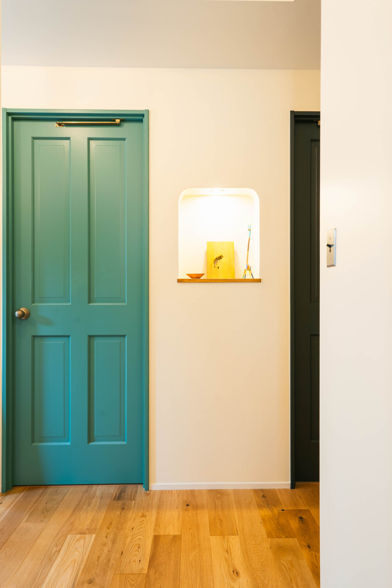 廊下の突き当たりの壁にはニッチの棚をつけ気分に合わせて飾り付け。