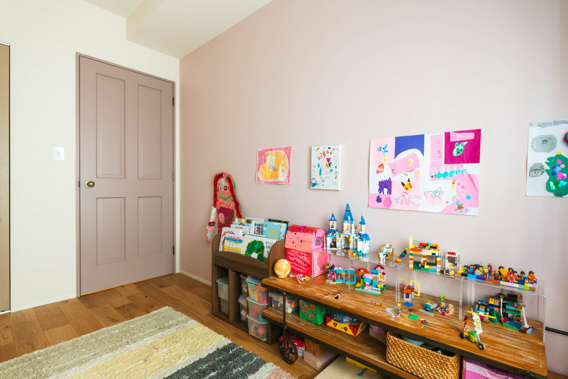 お子様の部屋は二色のピンクを組み合わせ楽しく可愛らしい雰囲気に。